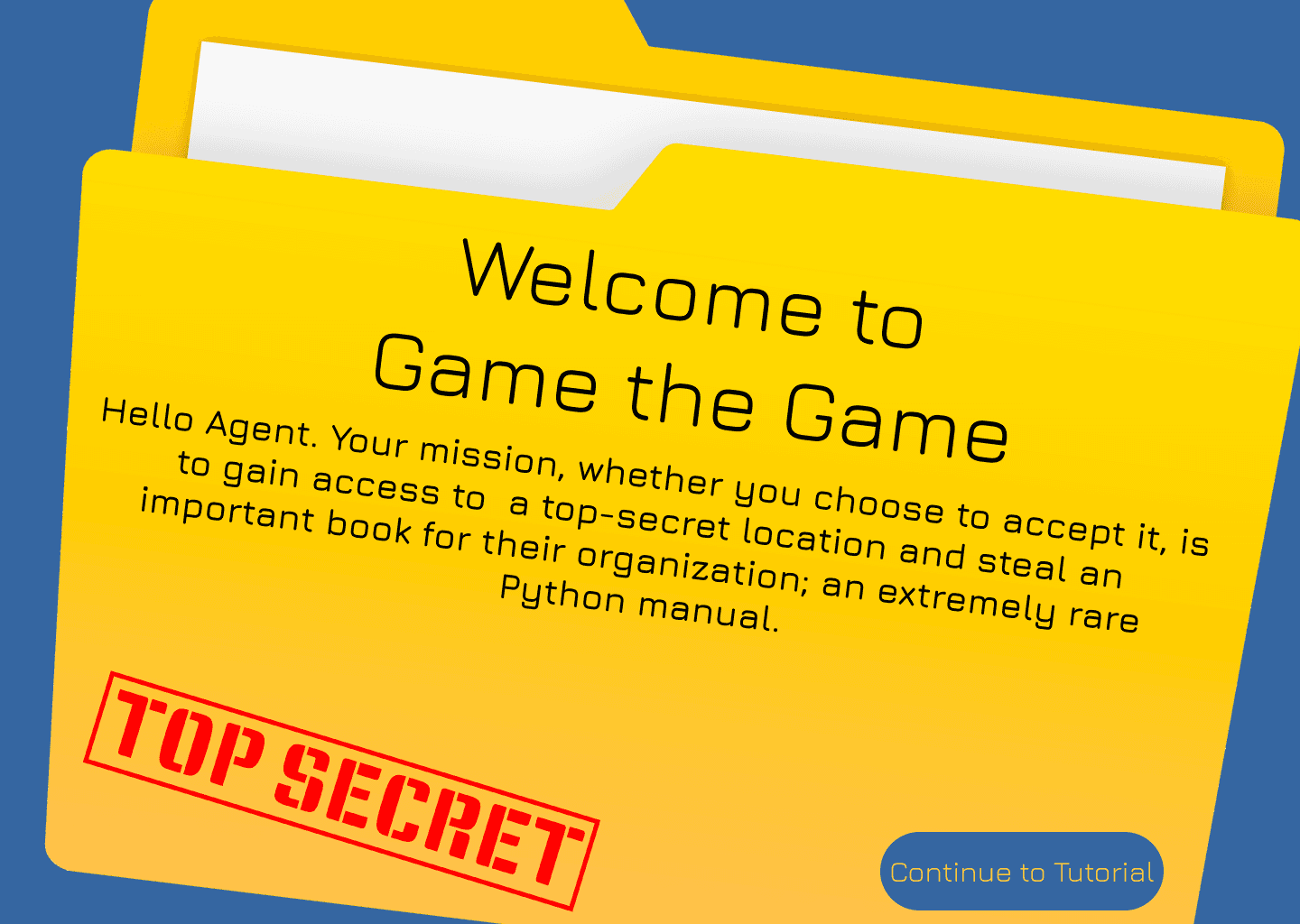 A dark color theme aligned with the spy mission narrative