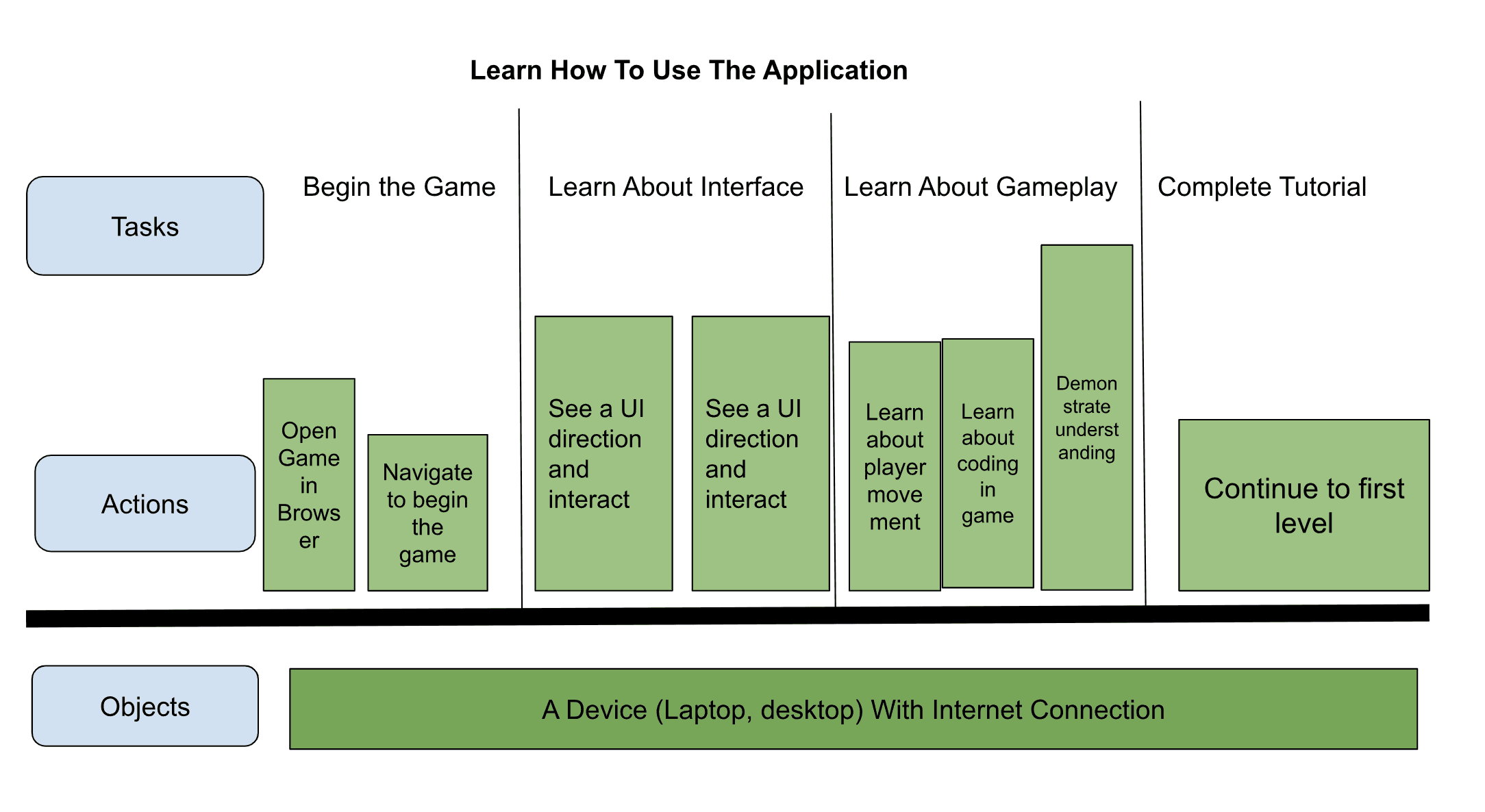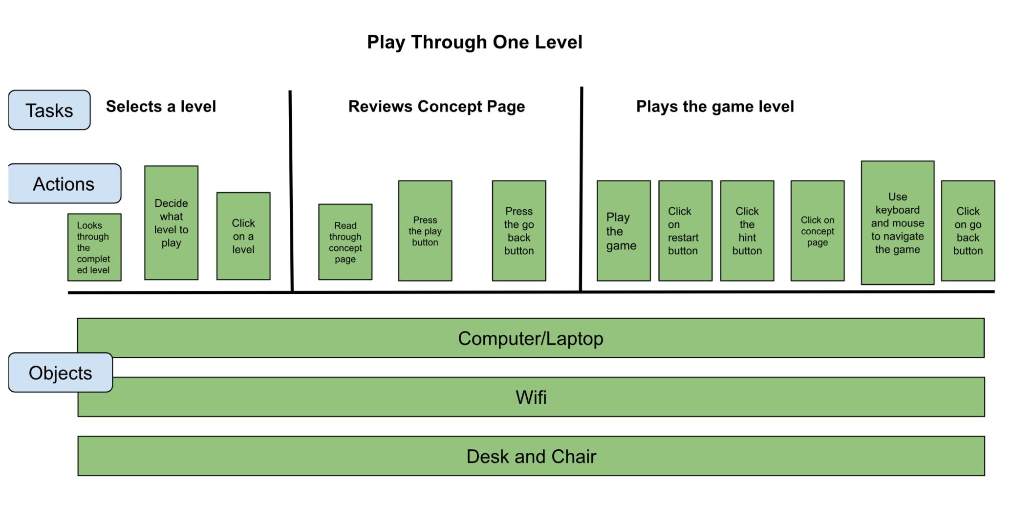 As students in this field, we were instructed by our professor to take off our Software Engineer hats and put on our designer hats. The first step was to create a user workflow and a mental model to fully understand who the main users of the game are and how they interact with the game interface.