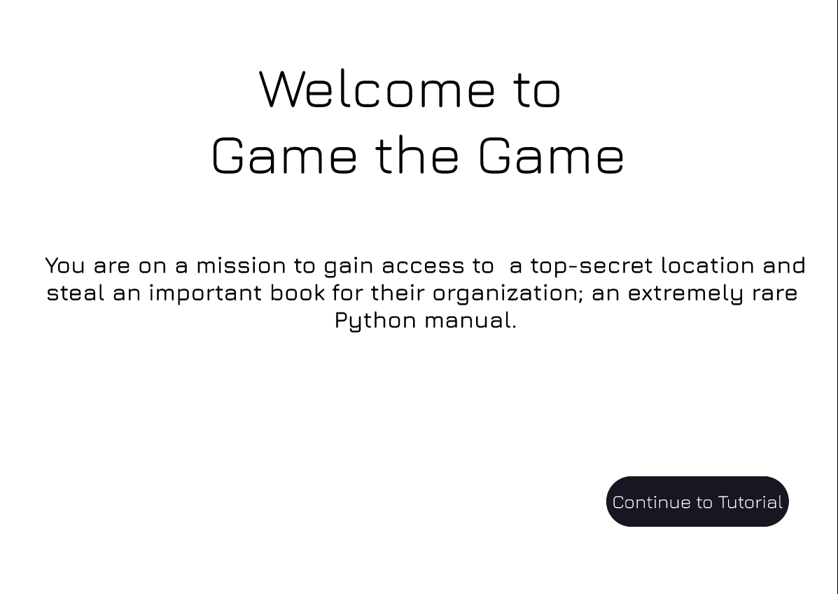 This project was our team’s first exploration into UX design and the use of Figma. With the foundational knowledge gained from class, we set out to create an engaging spy-themed interface using dark, night-inspired visuals. Our design goal was to make the experience feel immersive while ensuring that the gameplay interface remained intuitive and easy to navigate—even for students new to programming.